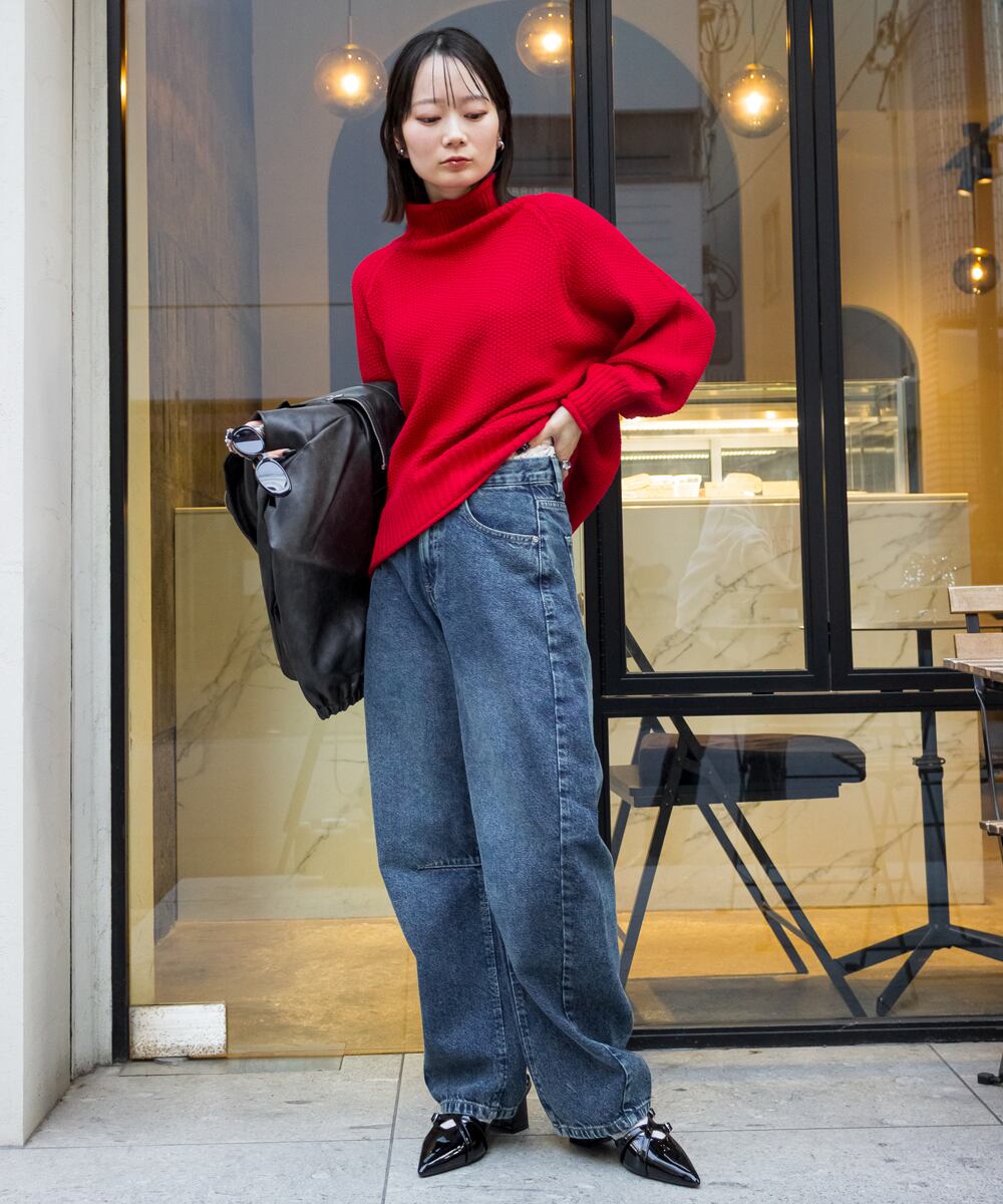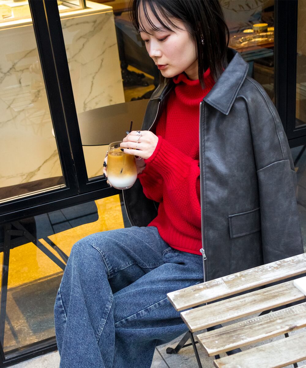 リブ編みの袖口と裾が全体を引き締め、ルーズになりすぎないバランスの良いシルエットに。