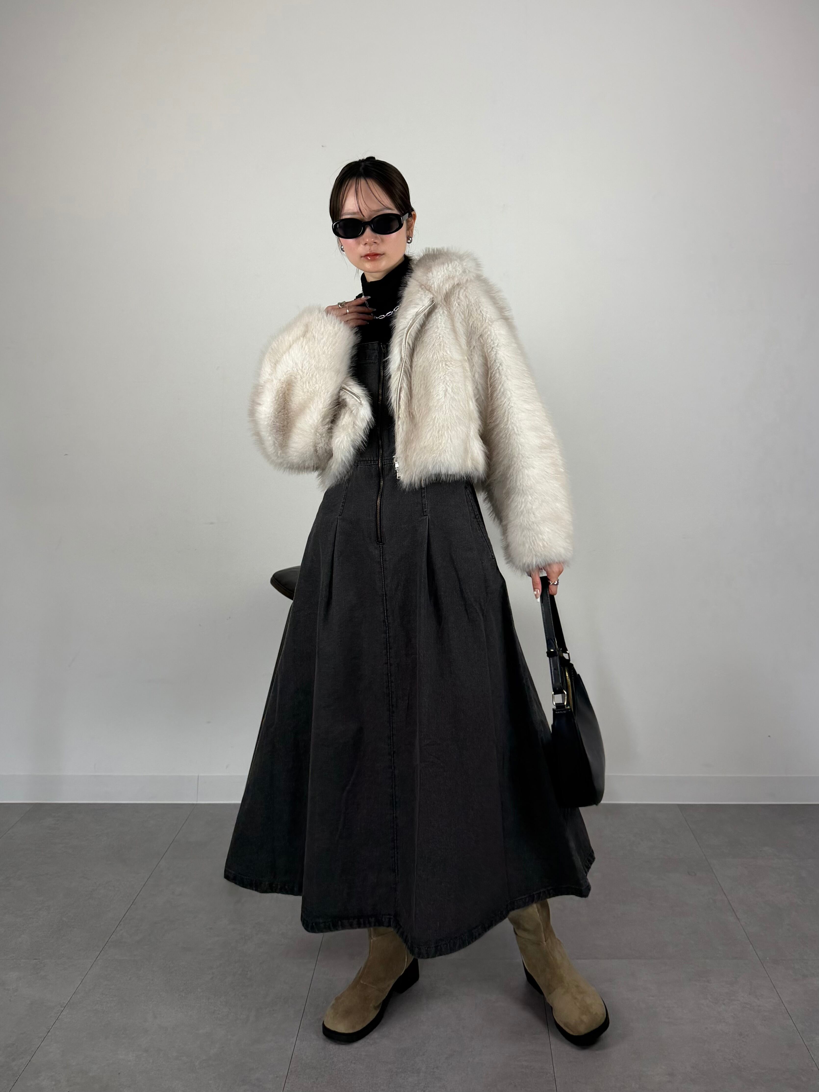ショート丈のファーコートは、韓国ストリートのトレンドをしっかりと押さえた一枚です。Wジップデザインがスタイリッシュで独自の雰囲気を演出します。ファー素材が温かく、軽やかな着心地でありながら、見た目もお洒落。冬のコーディネートに華やかさをプラスするアイテムです。