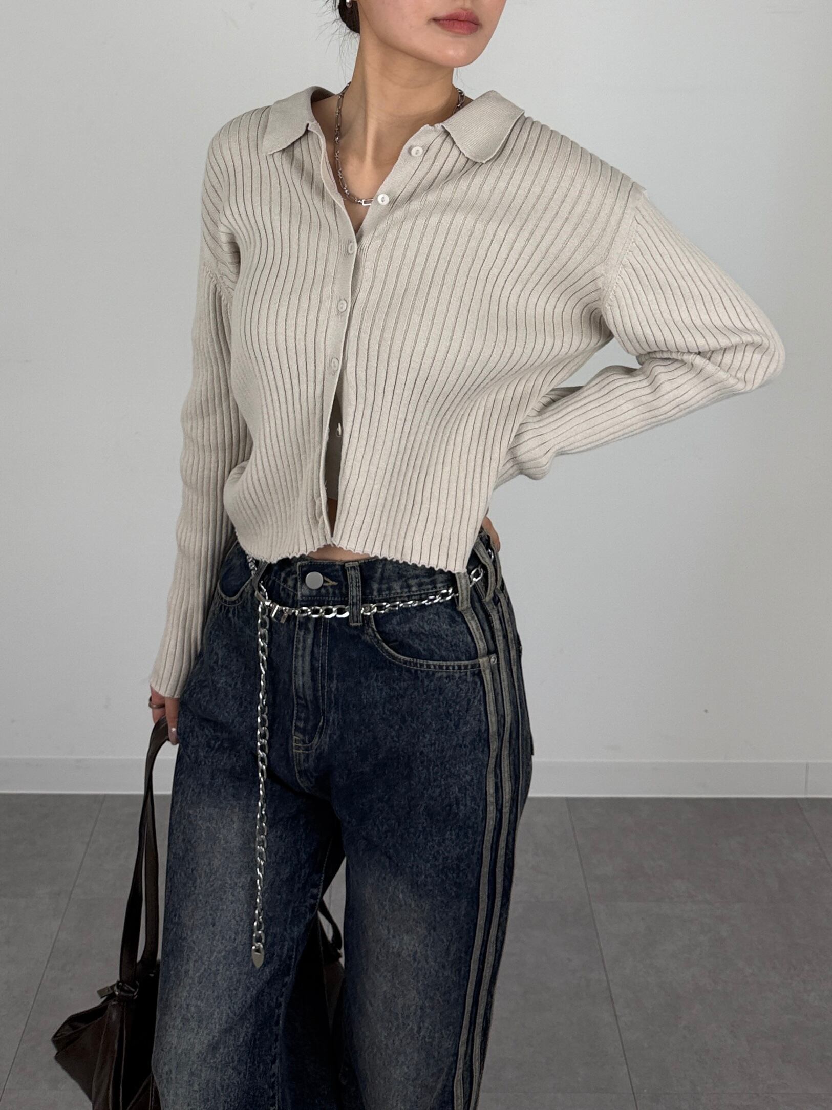 襟付きのリブニットカーディガンは、一枚で着ても羽織ってもスタイリングが楽しめるトレンドアイテムです。韓国ストリートのエッセンスを取り入れたデザインで、シンプルながらも存在感を発揮します。柔らかなリブニット素材が、心地よいフィット感を提供し、デイリーユースからお出かけまで幅広いシーンで活躍します。