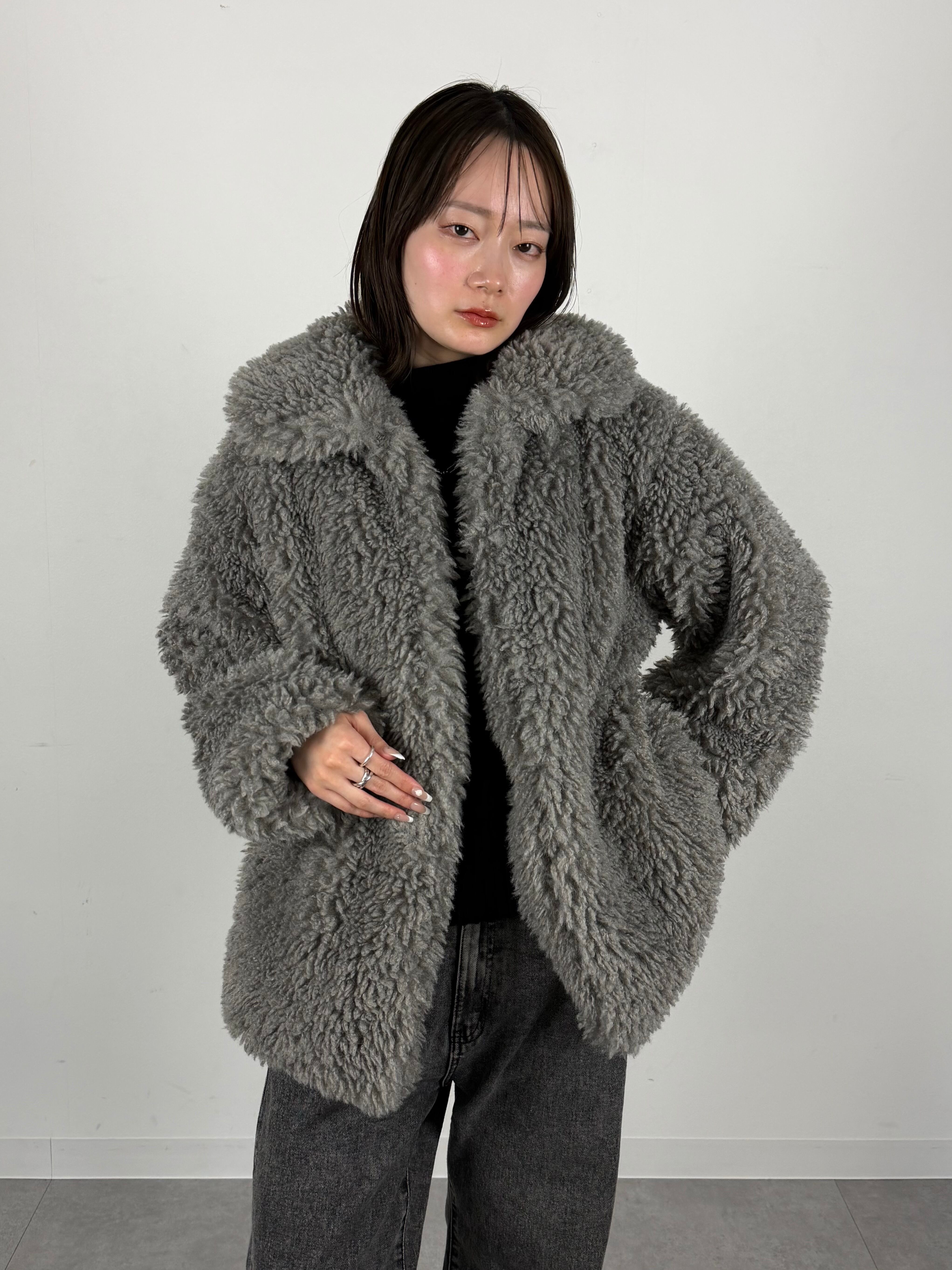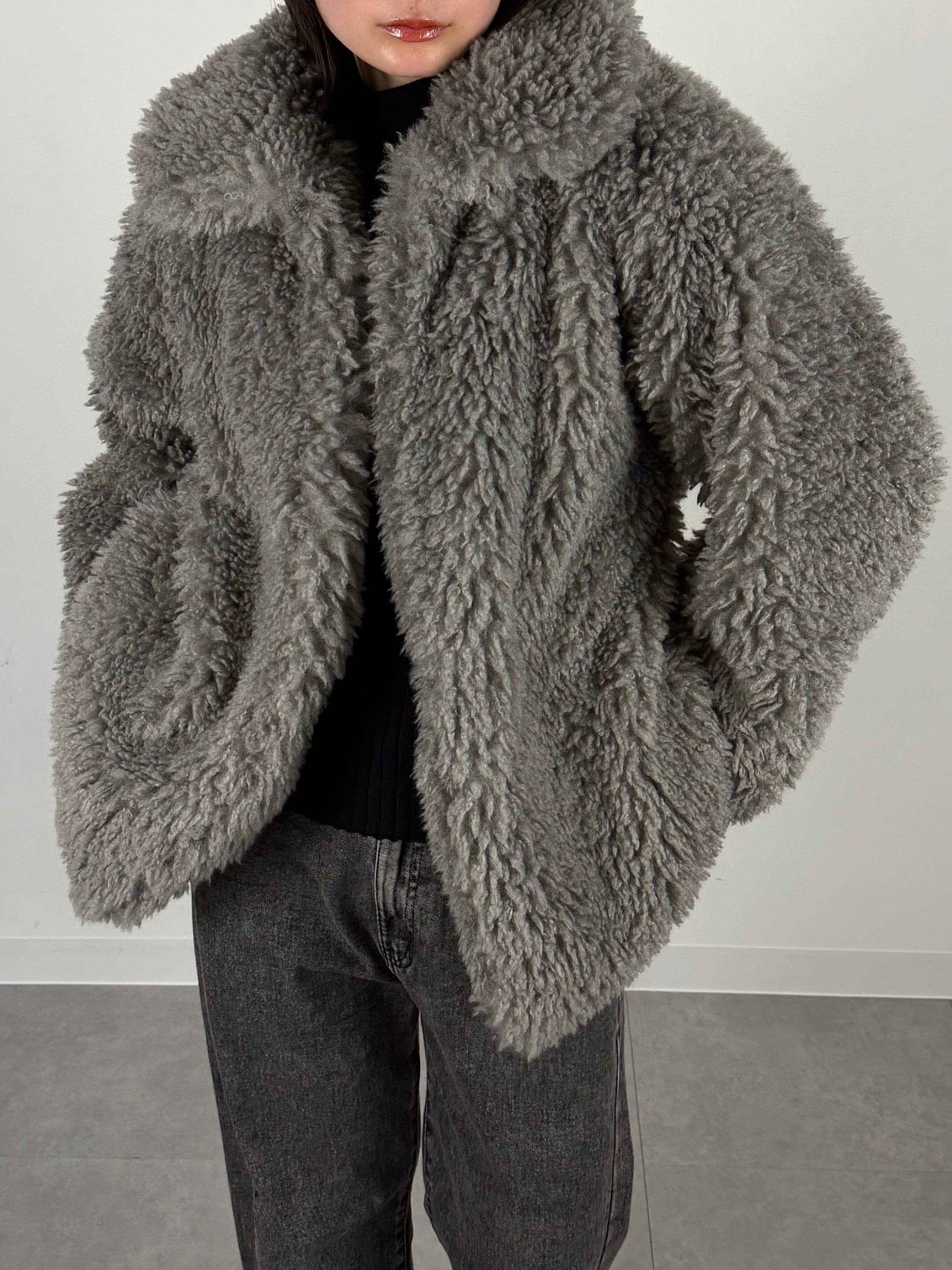 柔らかくボリューム感のあるシープファー素材を使用し、羽織るだけで上品かつ暖かい印象に。