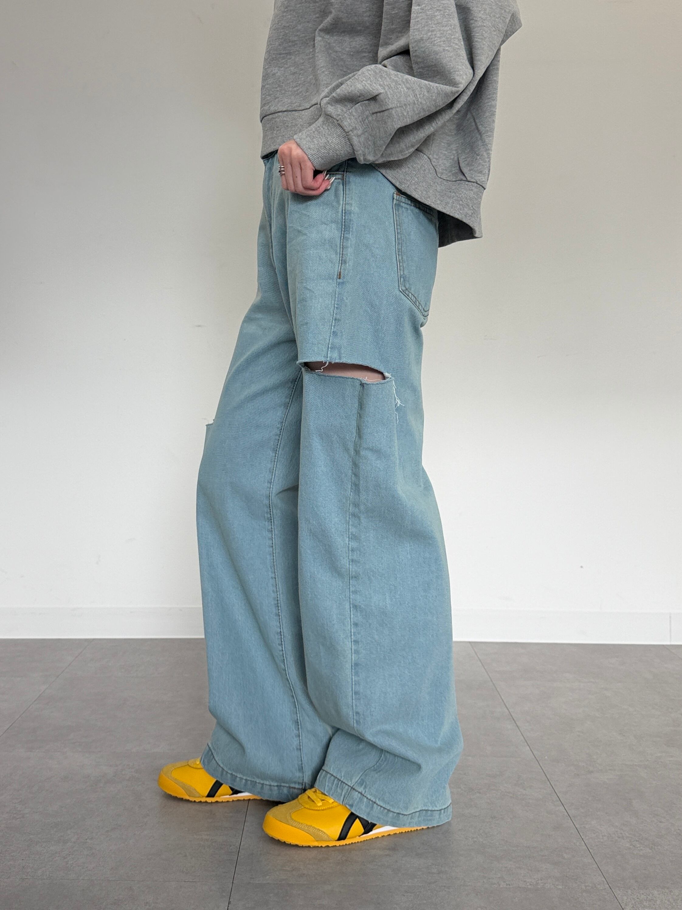【新色追加】サイドカットダメージデニム[MEATD-0035][mellomela.]