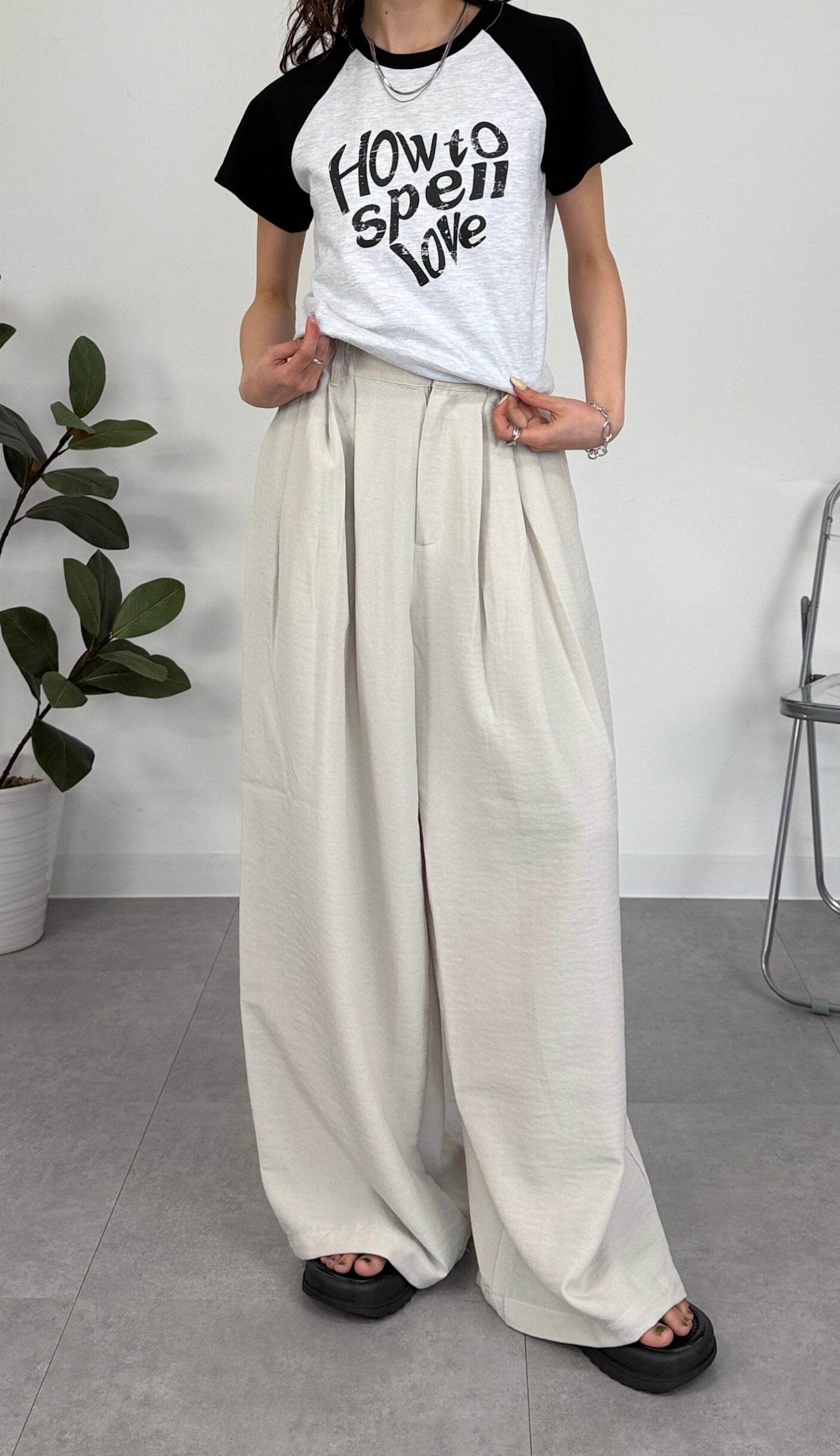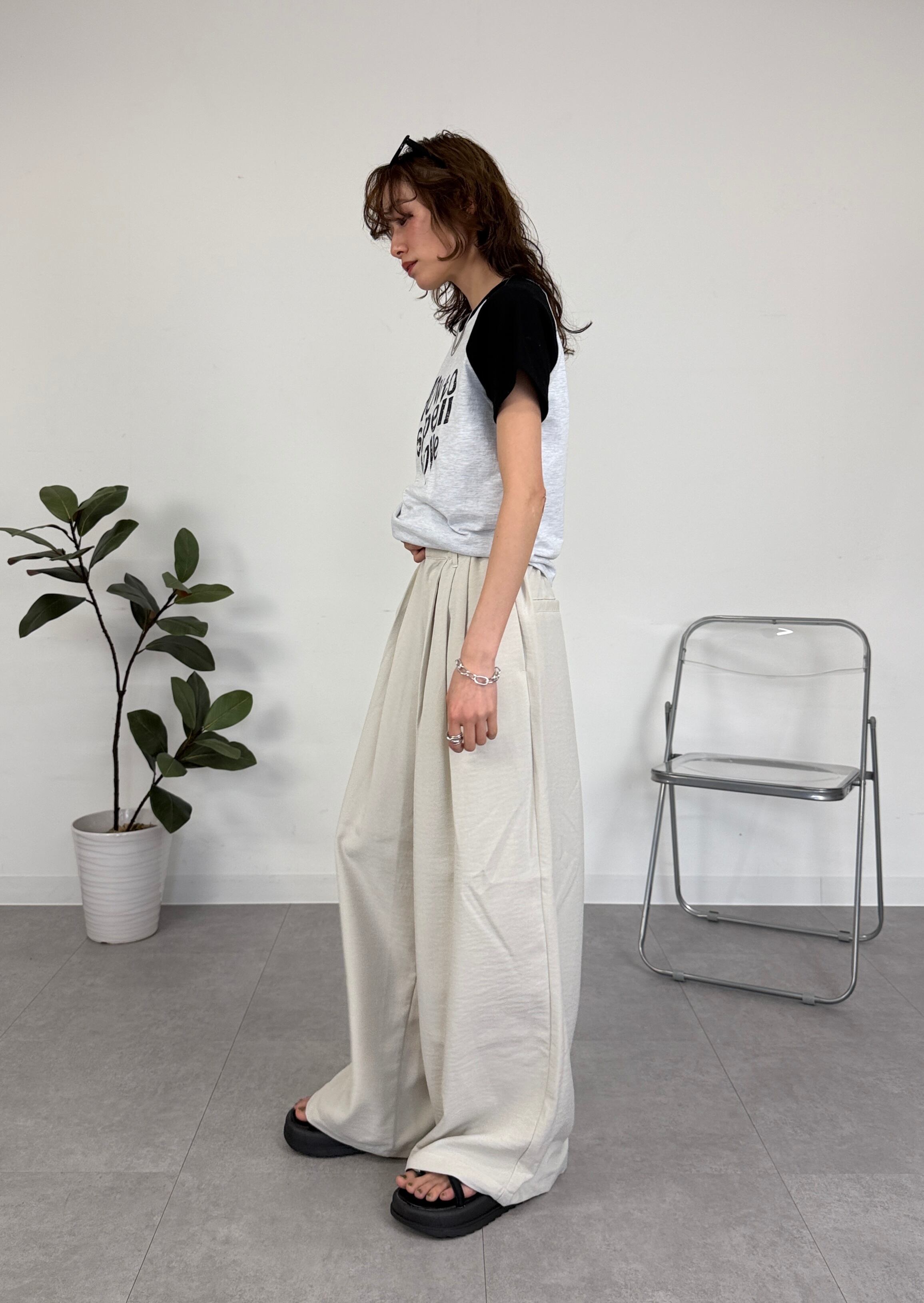 リネンライクな素材感が印象的なワイドパンツ。こなれた大人のリラックスコーデが完成し、シンプルなTシャツやタンクトップをインすることで、パンツのボリューム感を引き立てられます。カジュアルながらも洗練されたスタイルを楽しめる一枚です◎